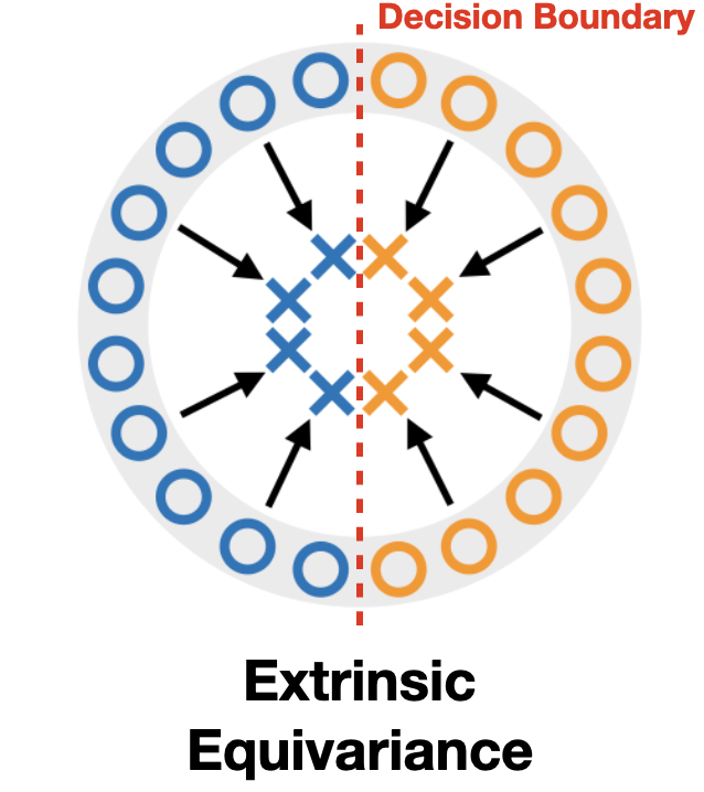 we propose to use an equivariant network that encodes the image-wise symmetry instead to help modeling the object-wise symmetry. We call this extrinsic equivariance.