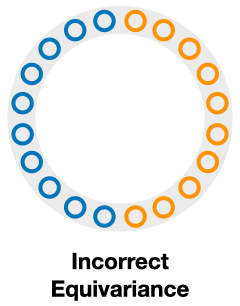 If we enforce reflection symmetry across the horizontal axis, the transformed data under reflection will have the same color as the original data, so the model preserves the problem symmetry, and we call it correct equivariance.